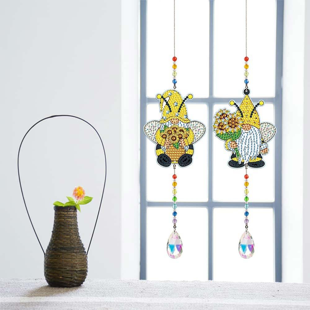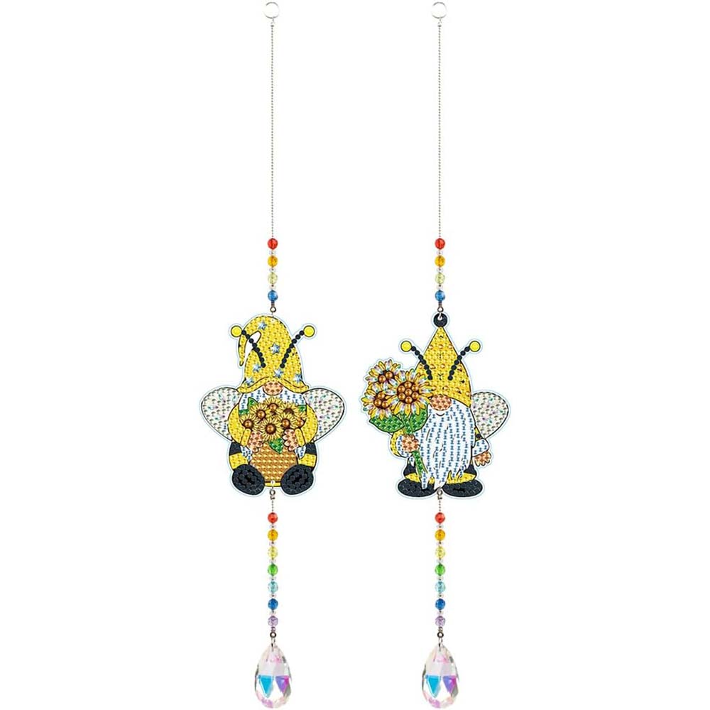 Carillón de Cristal Diamond Painting 5D Gnomos con Girasol 2 Piezas