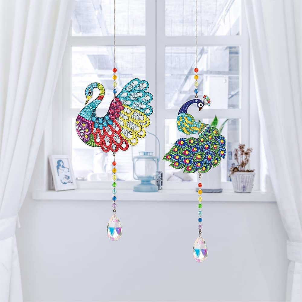 Carillón de Cristal Diamond Painting 5D Pavo Real 2 Piezas
