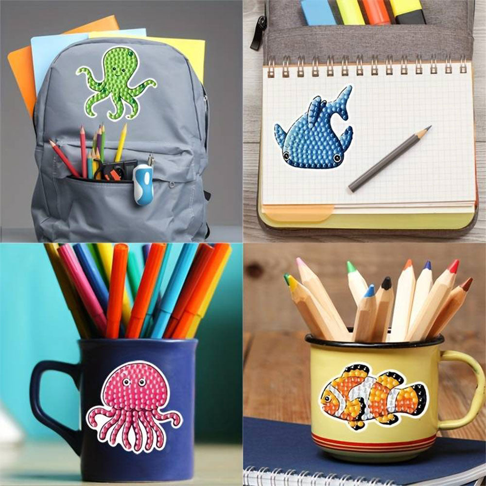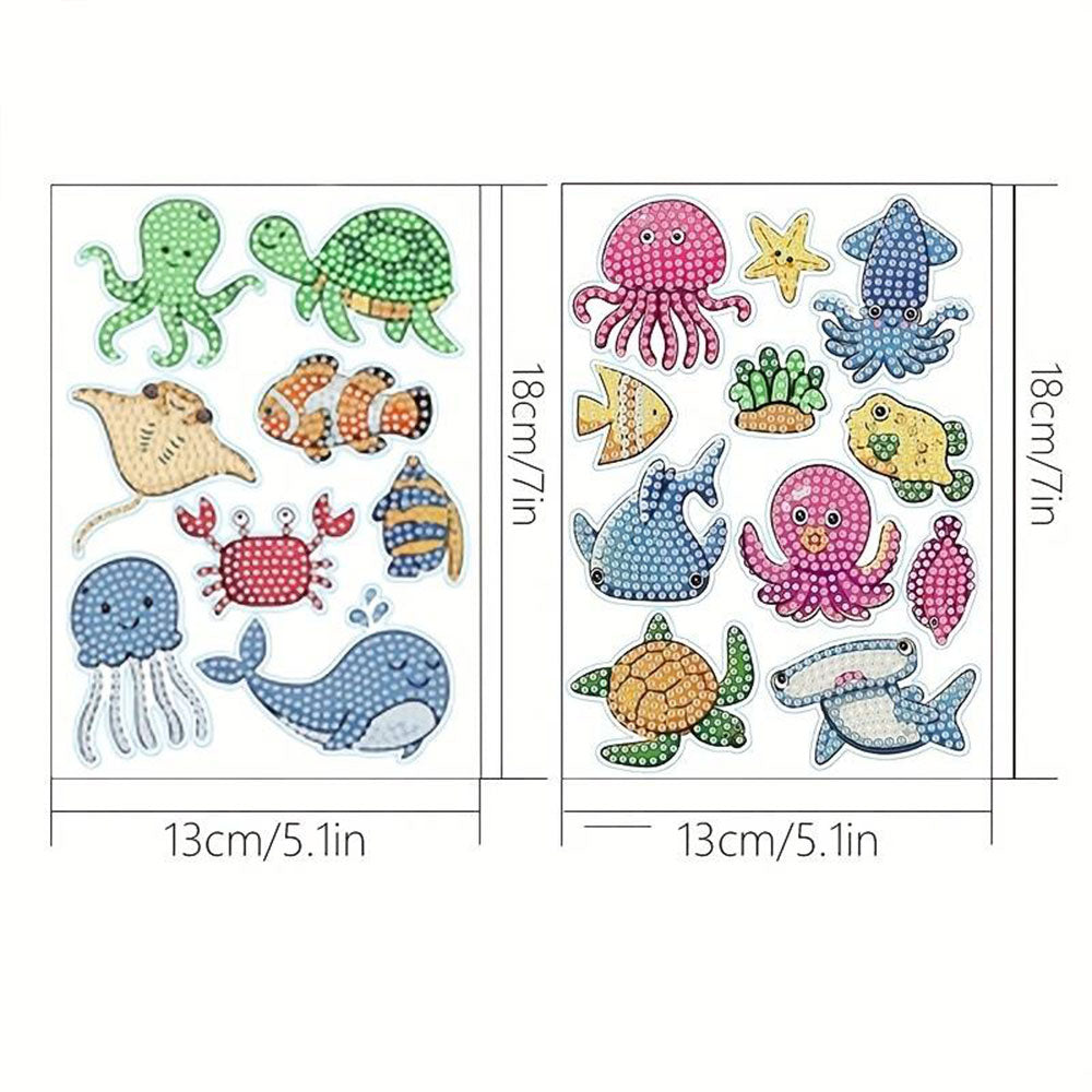 - El paquete incluye: 19 Pegatinas de Animales Marinos Únicos-Diamond / 1 Bolígrafo Único-Diamond / 1 Bandeja Única-Diamond / 1 Cera Única-Diamond