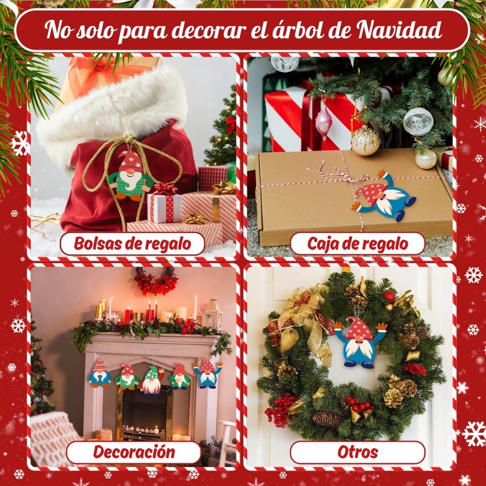 • 8 adornos de madera con forma de guantes y cajas de regalo envueltas