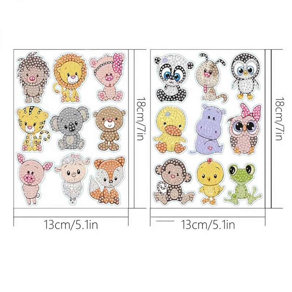 - Incluye: 18x Pegatinas de Animales / 1x Bolígrafo de Diamante / 1x Bandeja / 1x Cera