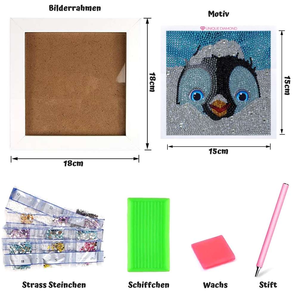 Diamond Painting 5D Niños Pingüino con Marco de Foto