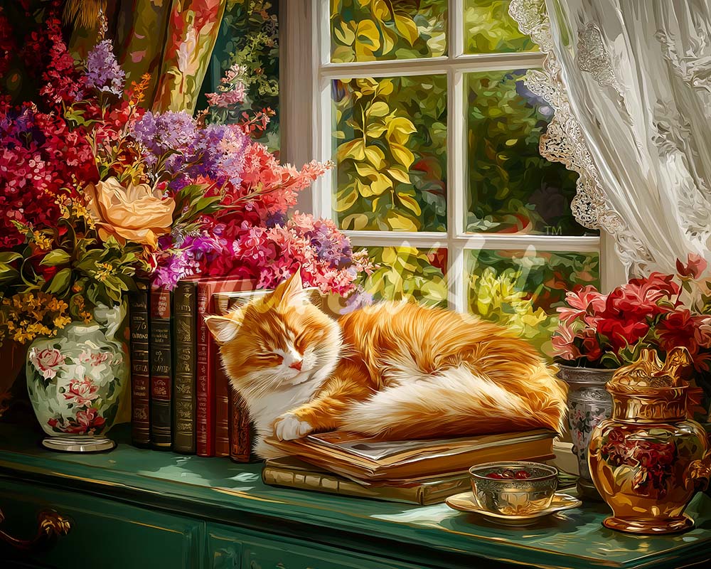Modelo : Diamond Painting - Ventana Acogedora con Gato