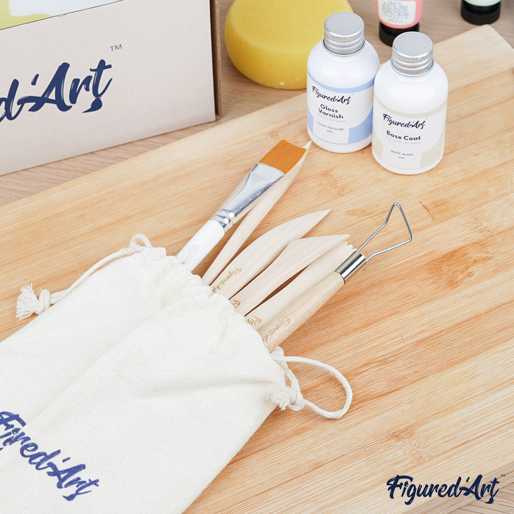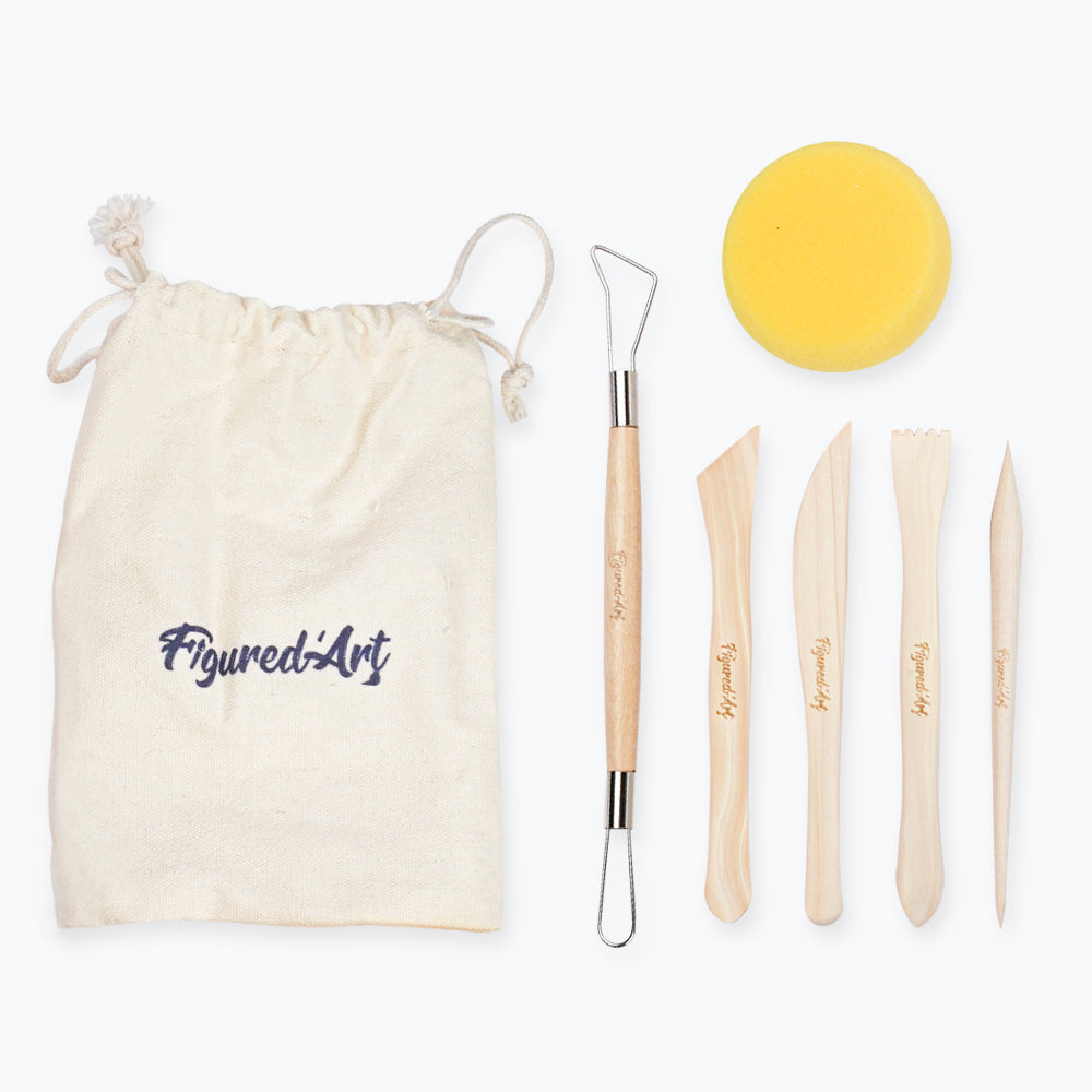 Si tus herramientas para modelar arcilla autoendurecible están desgastadas, no necesitas volver a pedir todo el kit. Aquí puedes comprar la bolsa que contiene las espátulas de madera, una plantilla y una esponja. Todo lo necesario para dar forma, alisar y terminar tus proyectos con precisión.
