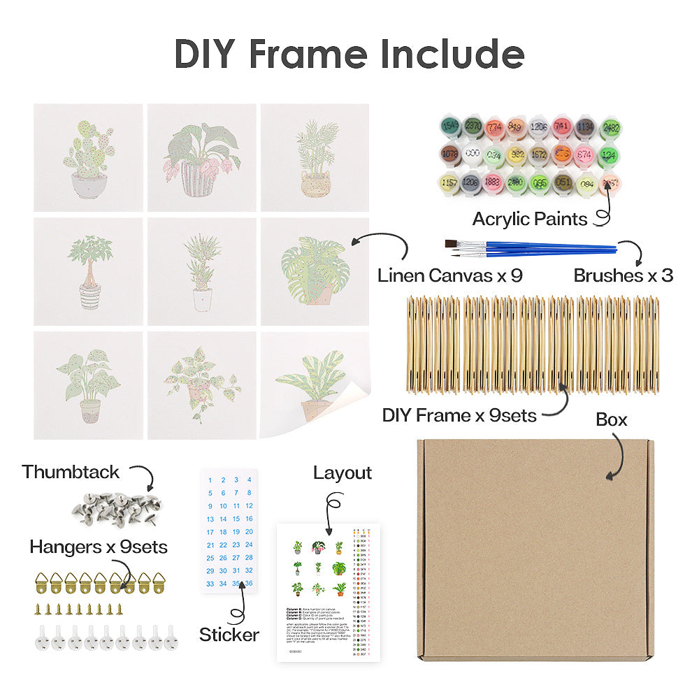 Mini Pintar por números 15x15cm (9 piezas) - Arte Vegetal Moderno
