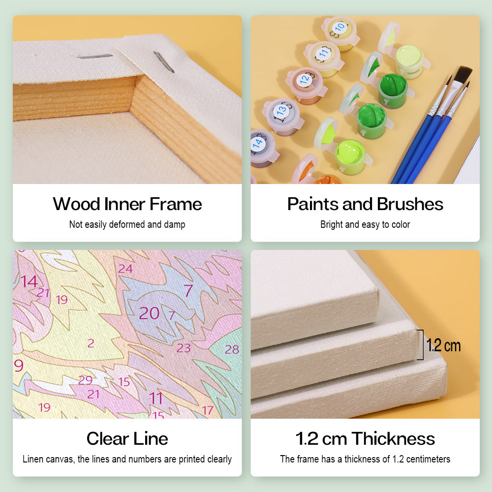 Estos mini cuadros para pintar por numeros son una excelente alternativa a los formatos grandes: compactos, prácticos y rápidos de completar. Perfectos para principiantes y aficionados a la pintura que deseen disfrutar de proyectos creativos y gratificantes, incluso con poco tiempo disponible. También son ideales para reuniones creativas o noches de pintura con amigos, donde cada uno puede pintar su propio lienzo mientras charla, escucha música y disfruta del momento.