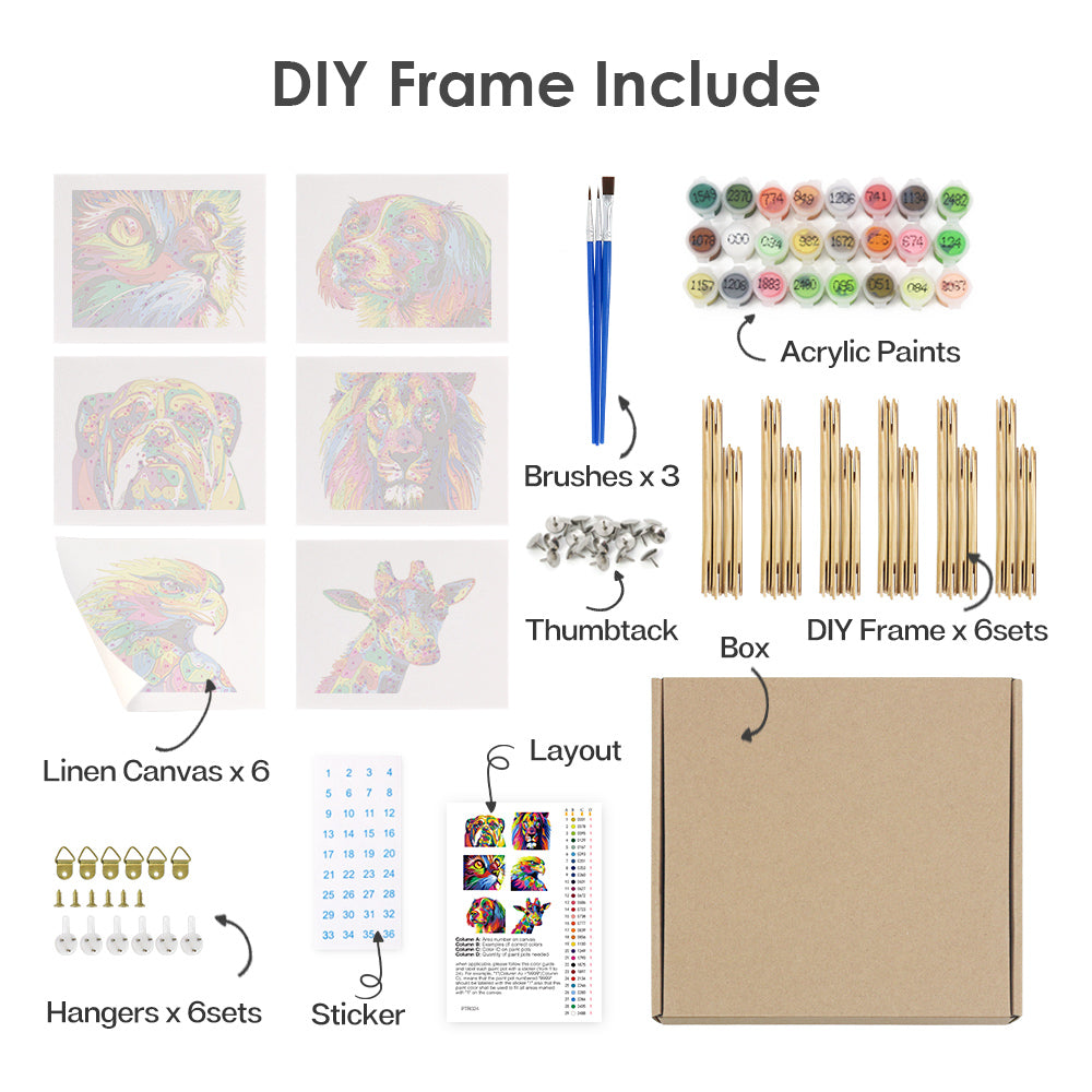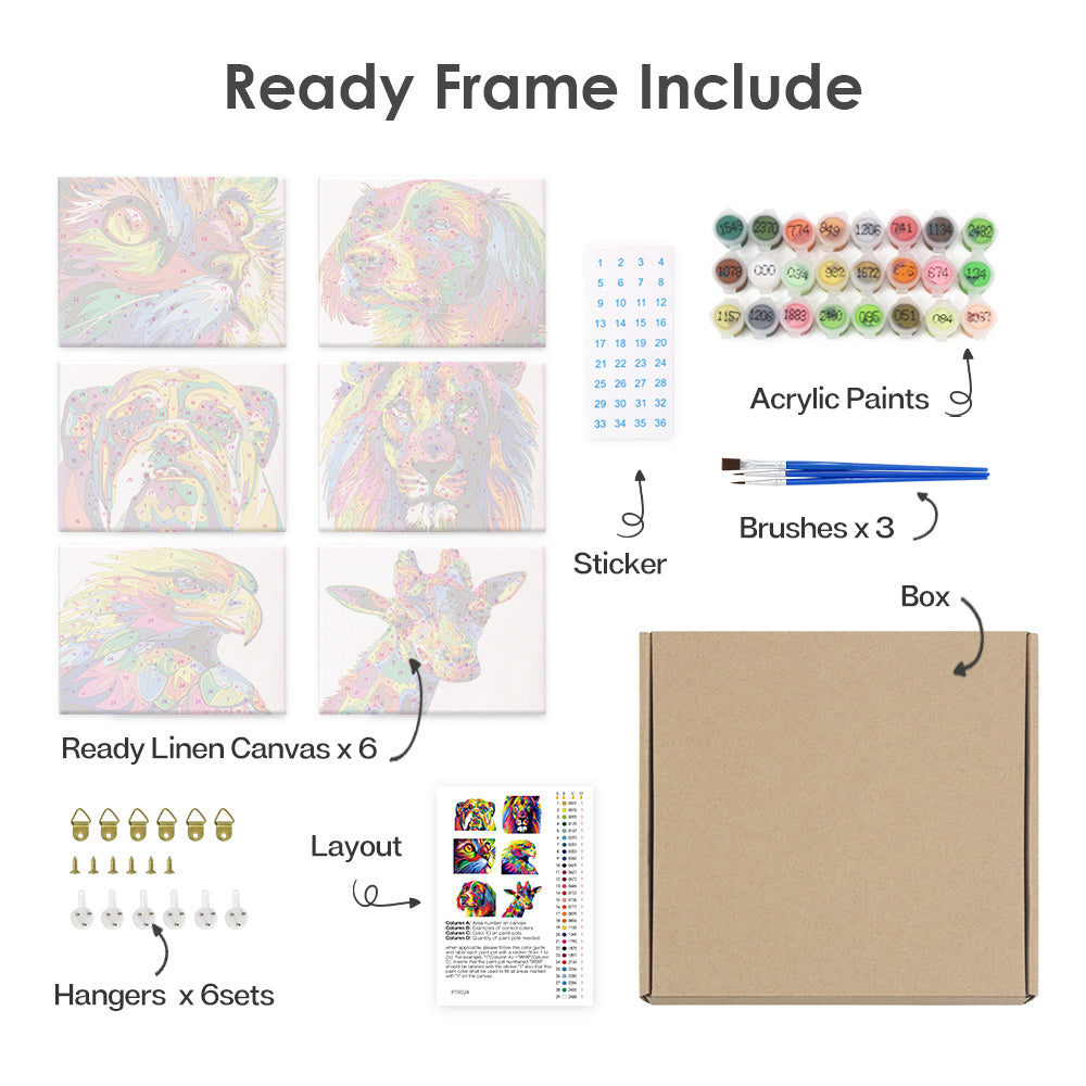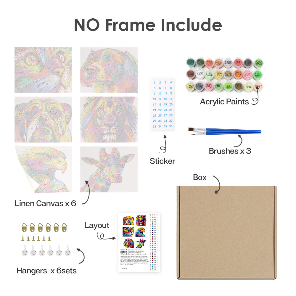 Mini Pintar por números 15x20cm (6 piezas) - Animales Abstractos Coloridos