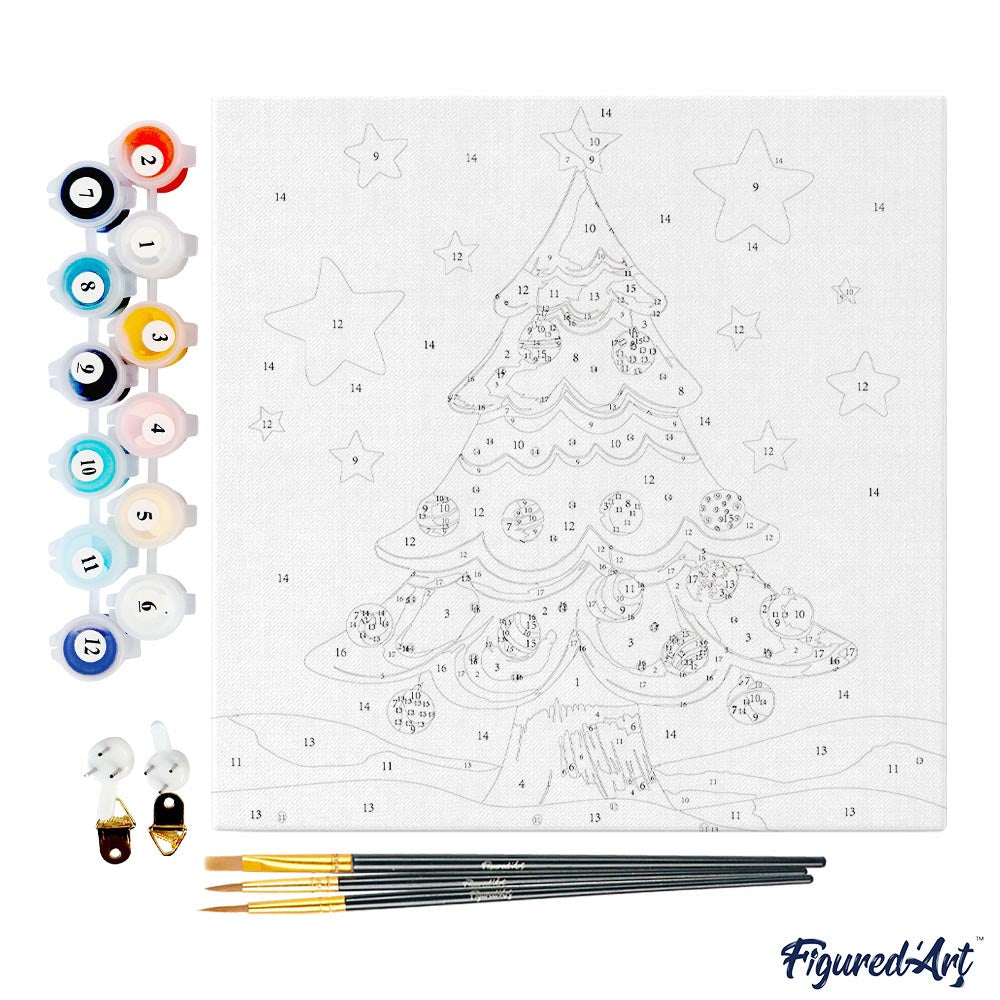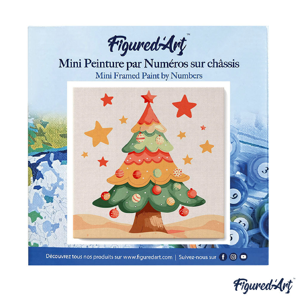 Modelo: Mini Pintura por Números 20x20cm con bastidor - Adorable árbol de Navidad