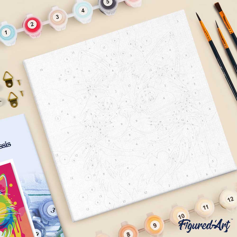 Modelo: Mini Pintura por Números 20x20cm con bastidor Arte Pop Abstracto de Gato