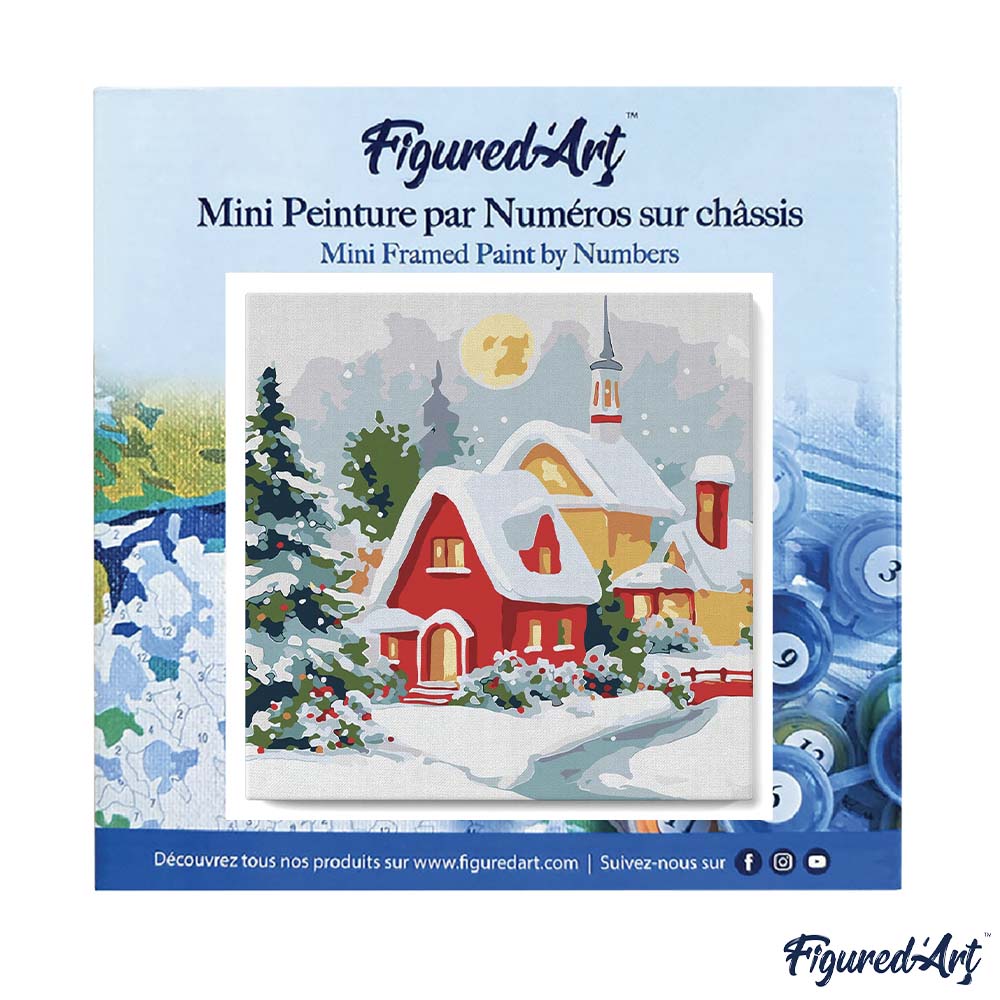 Mini Pintura por Números 20x20cm con bastidor - Casa roja en invierno