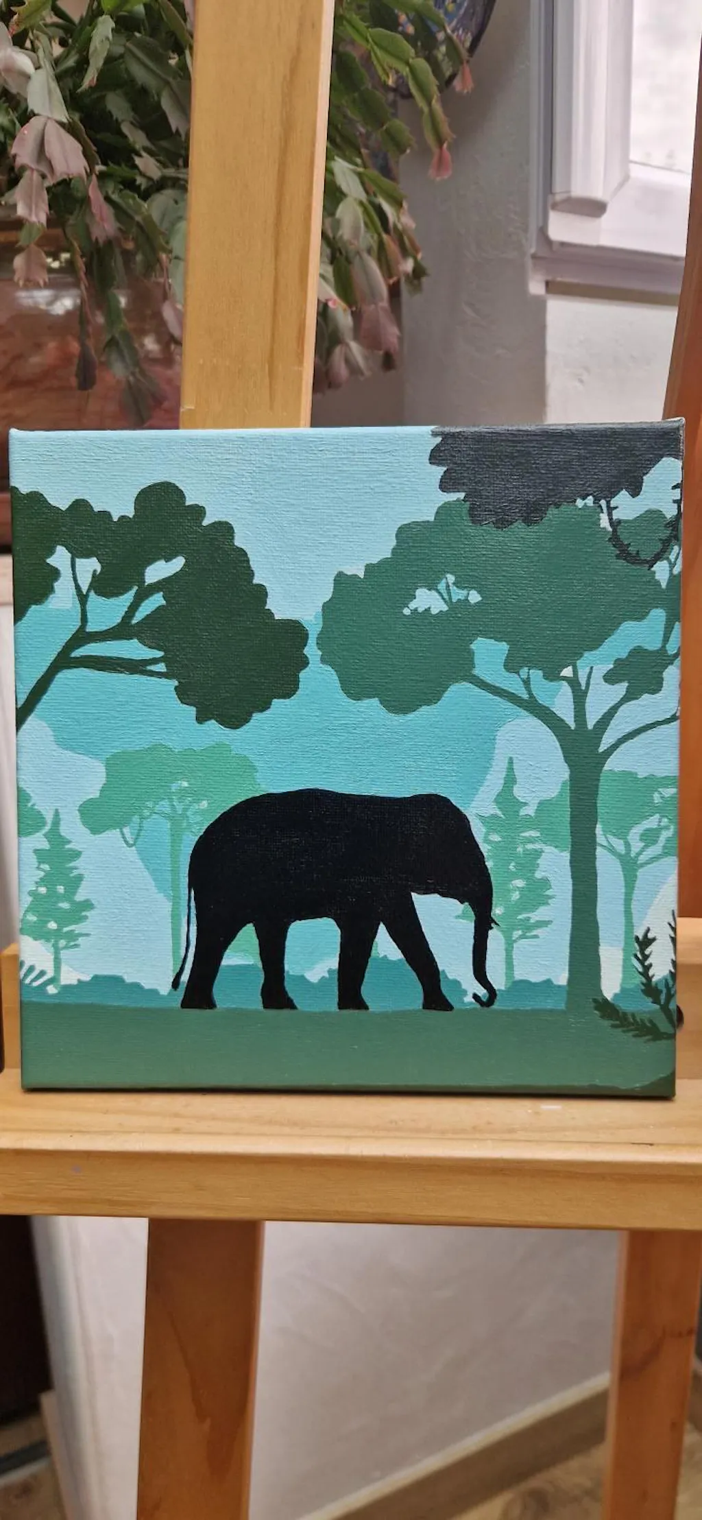 Modelo: Mini Pintura por Números 20x20cm con bastidor Elefante en el bosque verde