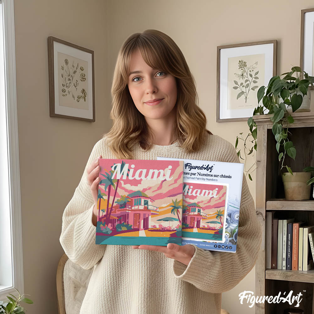Modelo: Mini Pintura por Números 20x20cm con bastidor Póster de Viaje Miami