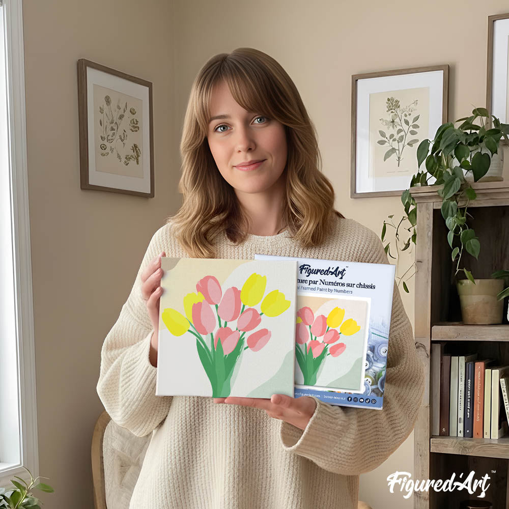 Modelo: Mini Pintura por Números 20x20cm con bastidor Ramo de tulipanes
