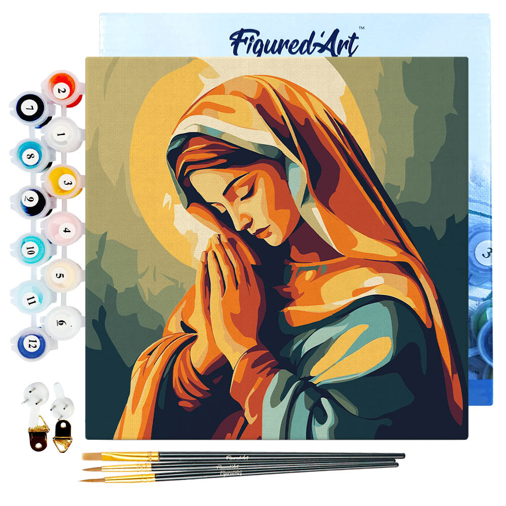 Modelo: Mini Pintura por Números 20x20cm con bastidor - Virgen María rezando