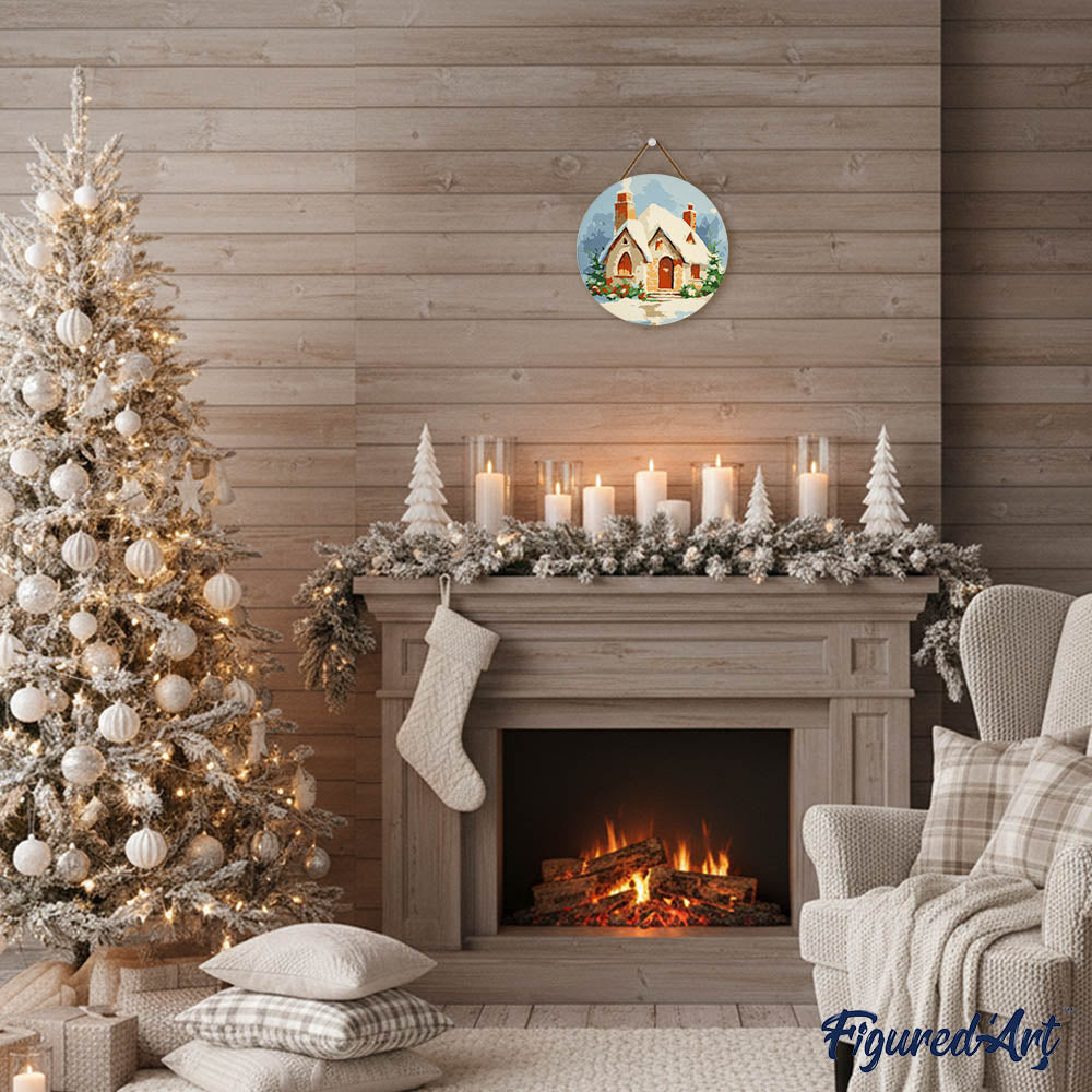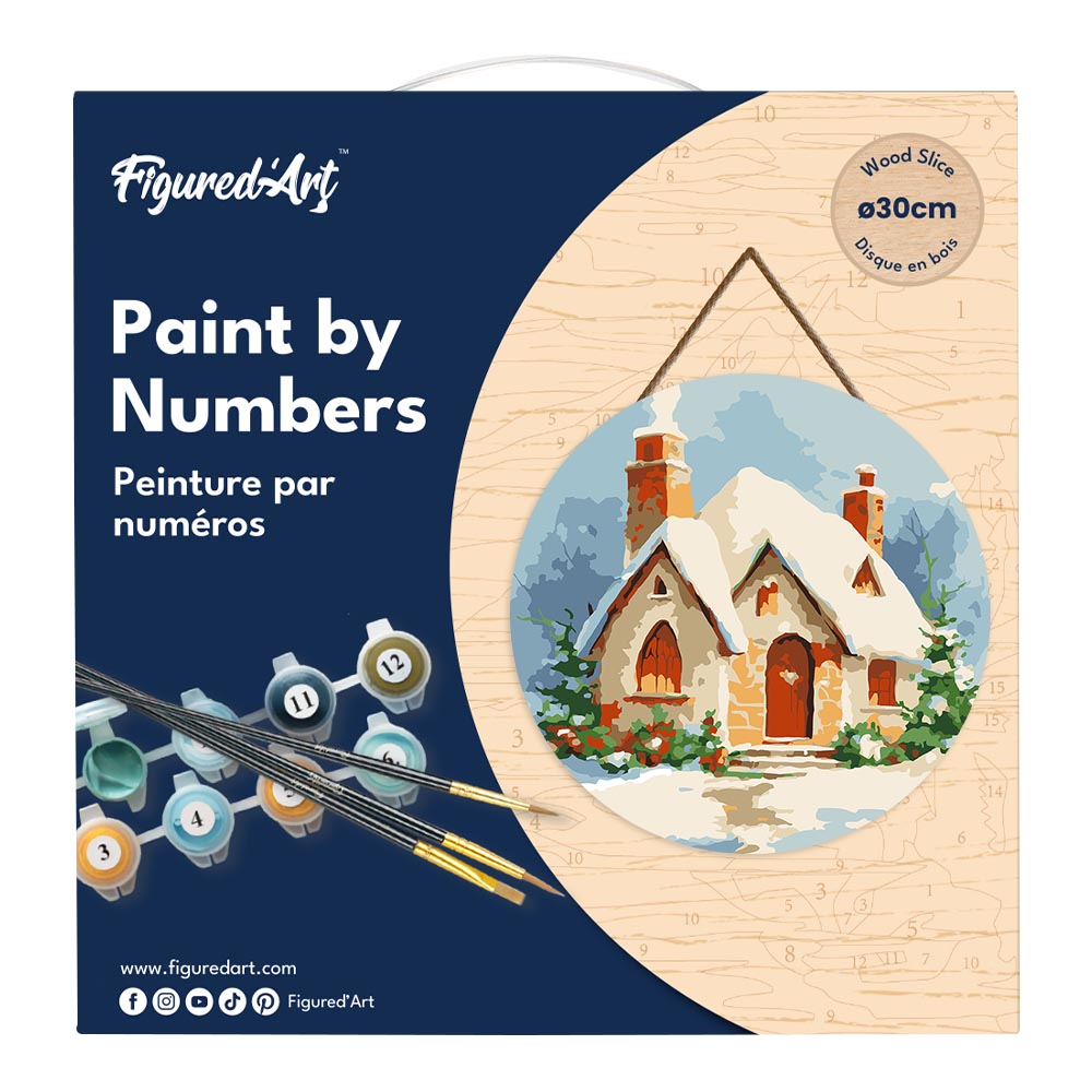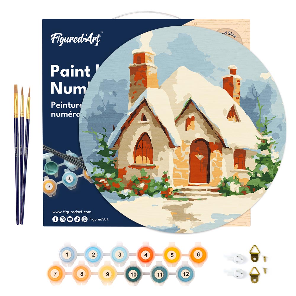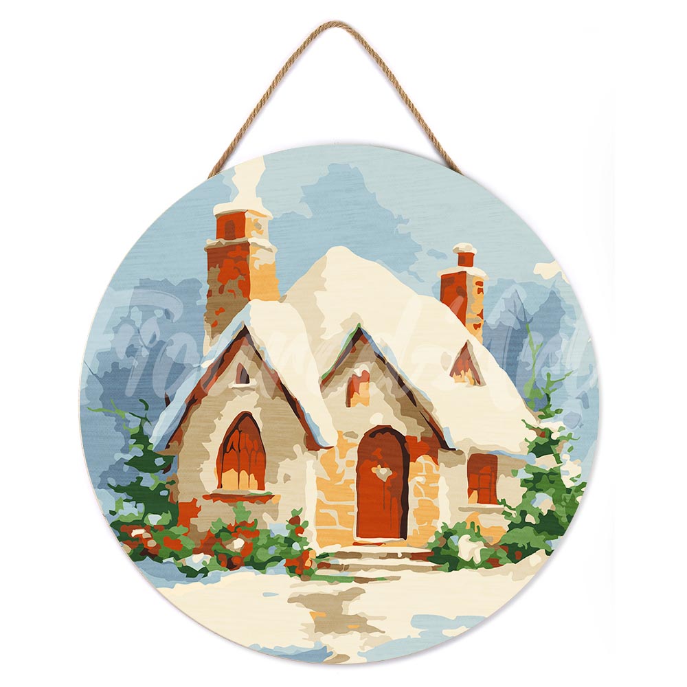Modelo: Pintar por Números en Disco de Madera - Casa de ladrillo en invierno