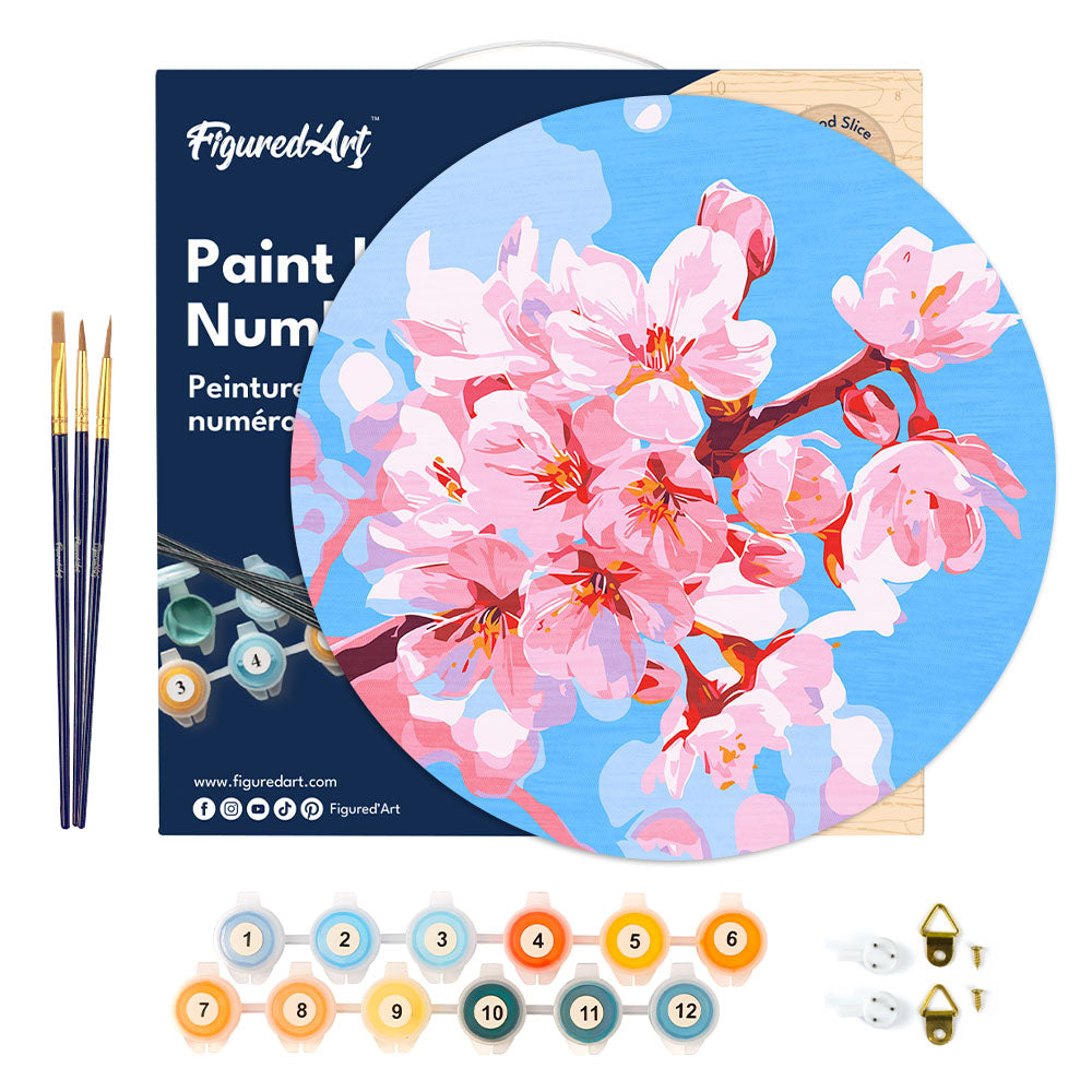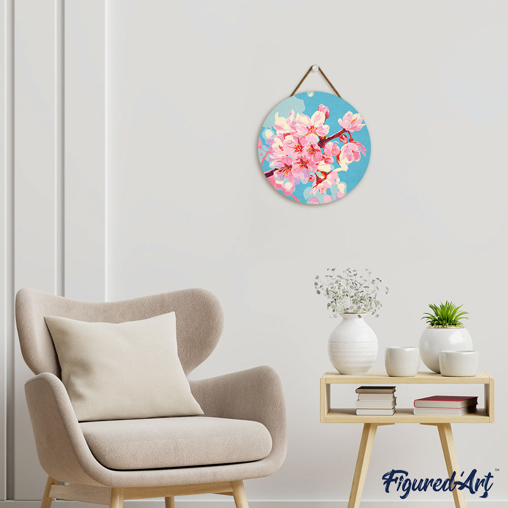 Modelo: Pintar por Números en Disco de Madera - Flor de cerezo