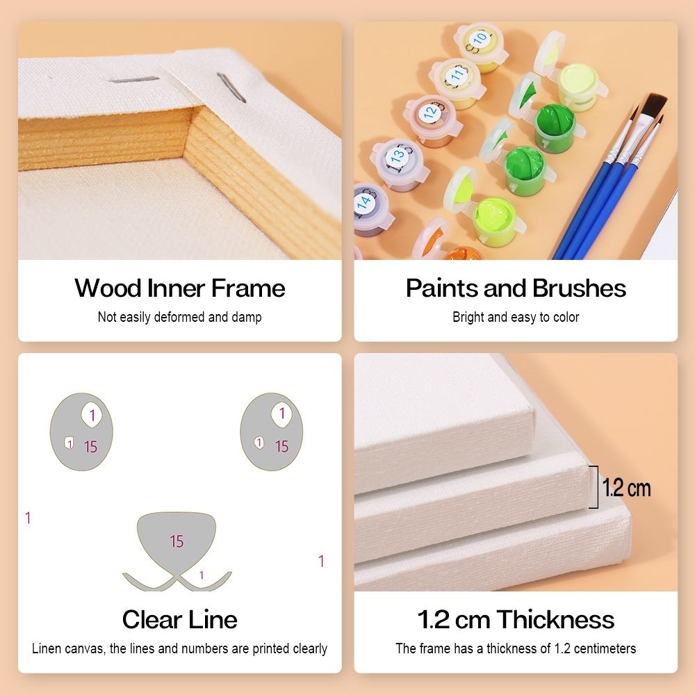 Estos mini cuadros para pintar por numeros son una excelente alternativa a los formatos grandes: compactos, prácticos y rápidos de completar. Perfectos para principiantes y aficionados a la pintura que deseen disfrutar de proyectos creativos y gratificantes, incluso con poco tiempo disponible. También son ideales para reuniones creativas o noches de pintura con amigos, donde cada uno puede pintar su propio lienzo mientras charla, escucha música y disfruta del momento.