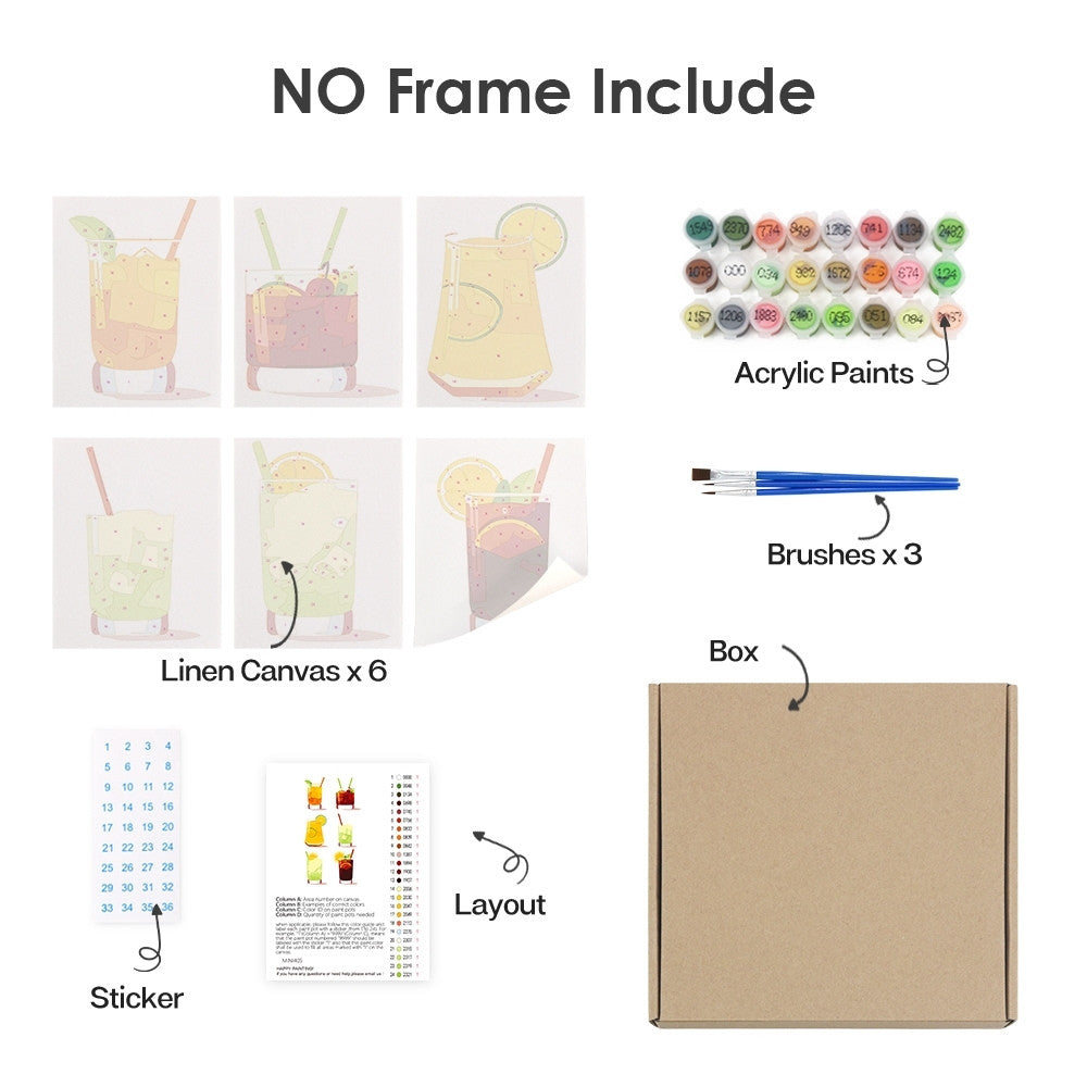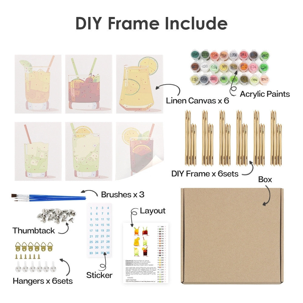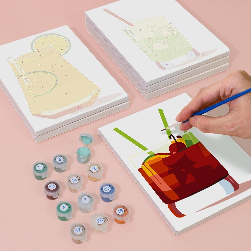Pintura por números – Juego de 6 lienzos | Cócteles de Verano Vibrantes Figured'Art