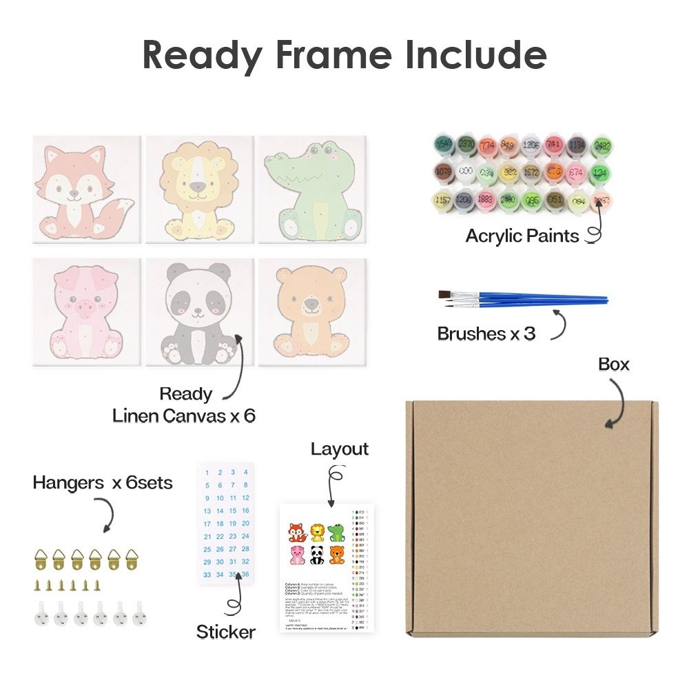 Pintura por números – Juego de 6 lienzos | Personajes de Animales Tiernos Figured'Art
