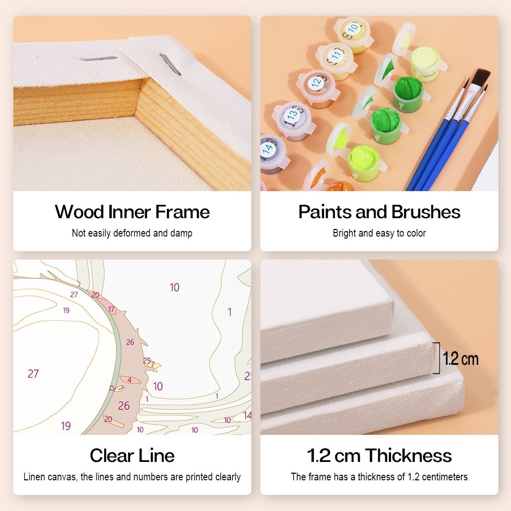 Estos mini cuadros para pintar por numeros son una excelente alternativa a los formatos grandes: compactos, prácticos y rápidos de completar. Perfectos para principiantes y aficionados a la pintura que deseen disfrutar de proyectos creativos y gratificantes, incluso con poco tiempo disponible. También son ideales para reuniones creativas o noches de pintura con amigos, donde cada uno puede pintar su propio lienzo mientras charla, escucha música y disfruta del momento.