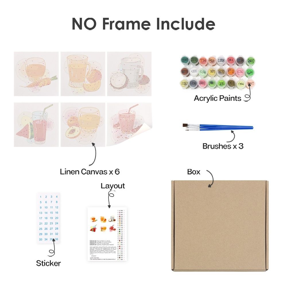 Pintura por números – Juego de 6 lienzos | Zumos Saludables Figured'Art