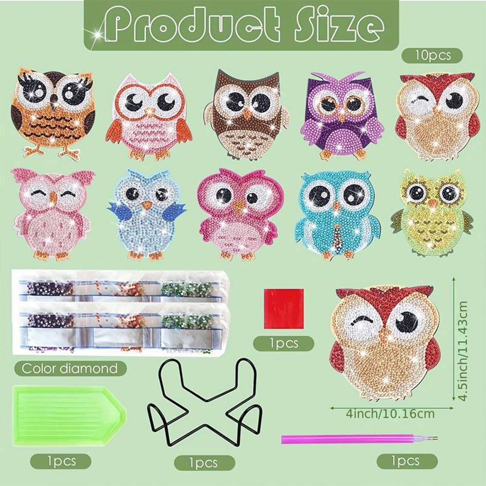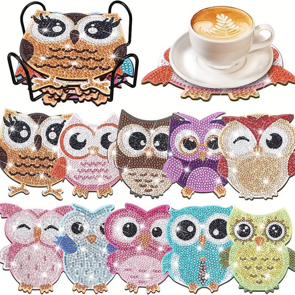 Posavasos Diamond Painting 5D con búhos conjunto de 10 piezas