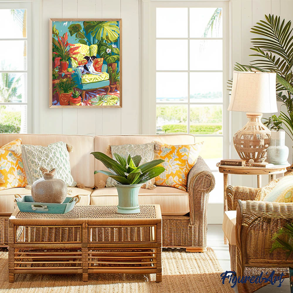 Pintar por numeros Figured'Art - Rincón de Plantas con Perro