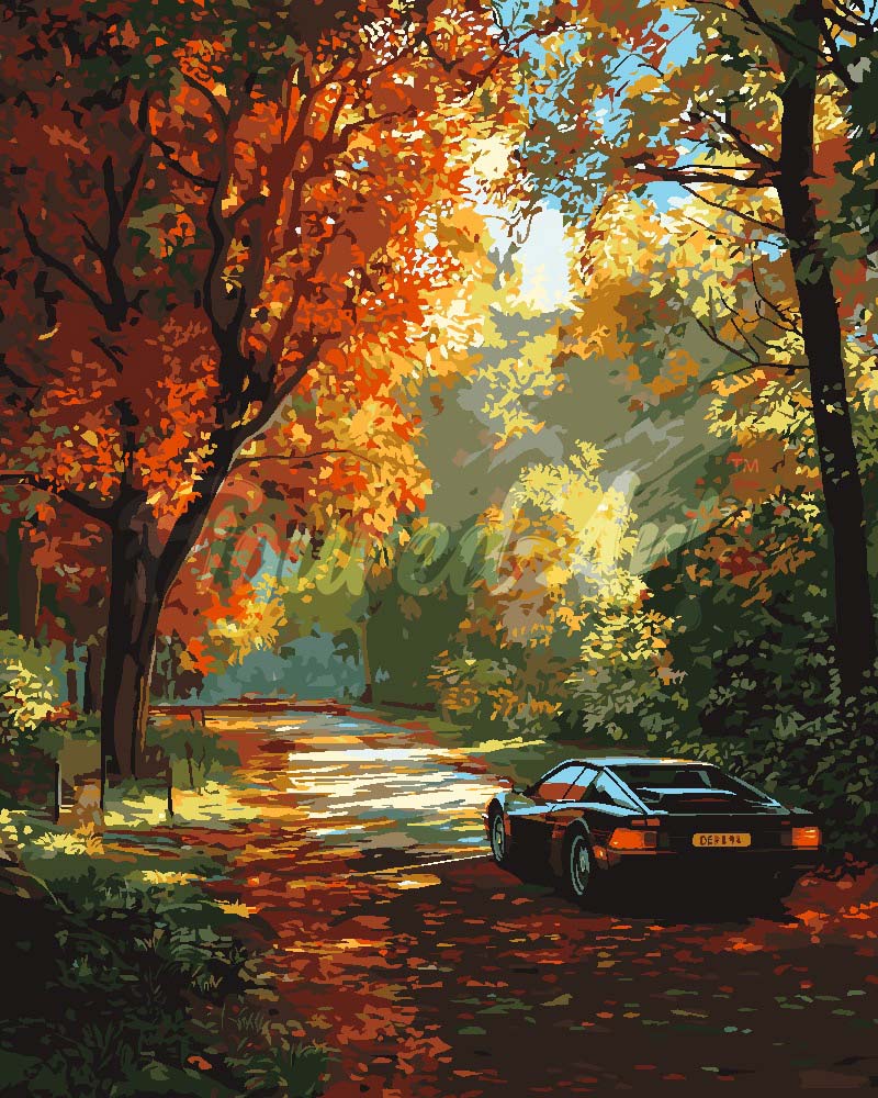Pintar por numeros Figured'Art - Viaje dorado por carretera
